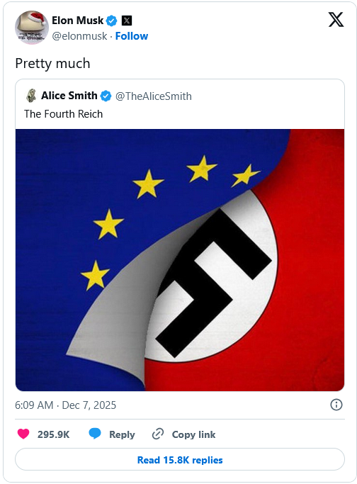 Článek ‚Fourth Reich‘: Musk Strikes Back At EU ‚Tyrants‘ After X Fine vyšel na serveru Zero Hedge/a> 8. prosince 2025