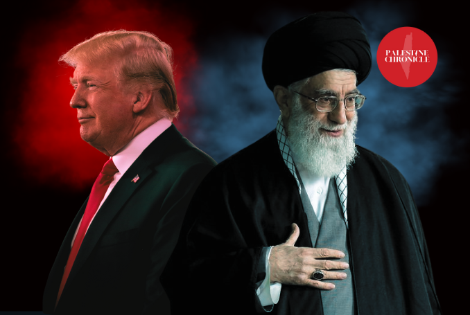 Americký prezident Donald Trump a íránský nejvyšší vůdce ajatolláh Seyyed Alí Chameneí, což odráží prohlubující se propast mezi diplomacií a rostoucí hrozbou konfrontace. (Fotografie: Wikimedia, íránská média. Design: Palestine Chronicle)