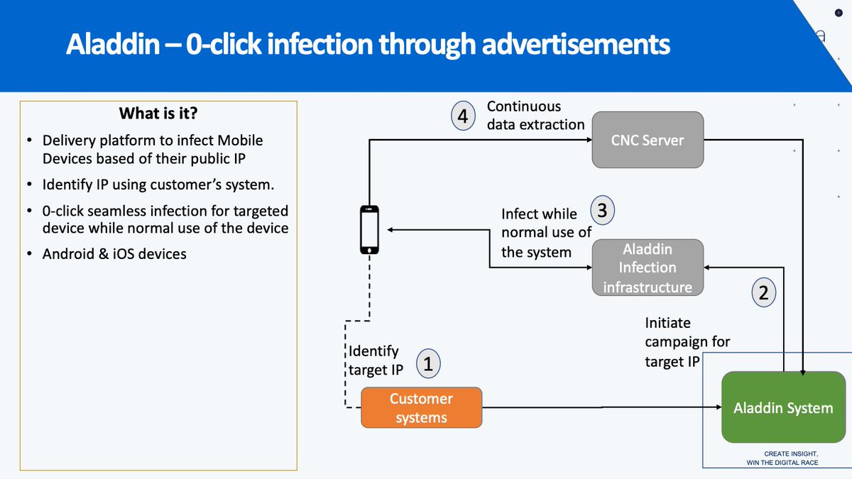 Aladdin je ve vývojiČesky nejméně od roku 2022 a postupem času se stává jen sofistikovanější. Znepokojivé je, že Intellexa není jedinou společností aktivní v této inovativní oblasti špionáže. Amnesty International naznačuje, že „metodologie infekce založené na reklamě jsou aktivně vyvíjeny a používány řadou žoldnéřských špionážních společností a konkrétními vládami, které vytvořily podobné infekční systémy ADINT [reklamní zpravodajství]“. Skutečnost, že ekosystém digitální reklamy byl narušen za účelem hackování telefonů nic netušících občanů, vyžaduje naléhavé opatření ze strany odvětví, které dosud nepřišlo.