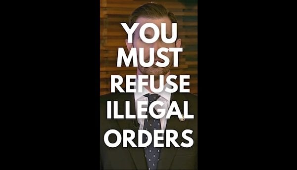 Naše zákony jsou jasné. Nelegální rozkazy můžete odmítnout. Nelegální rozkazy můžete odmítnout. Nelegální rozkazy musíte odmítnout. Nikdo nemusí plnit rozkazy, které porušují zákon nebo naši ústavu.