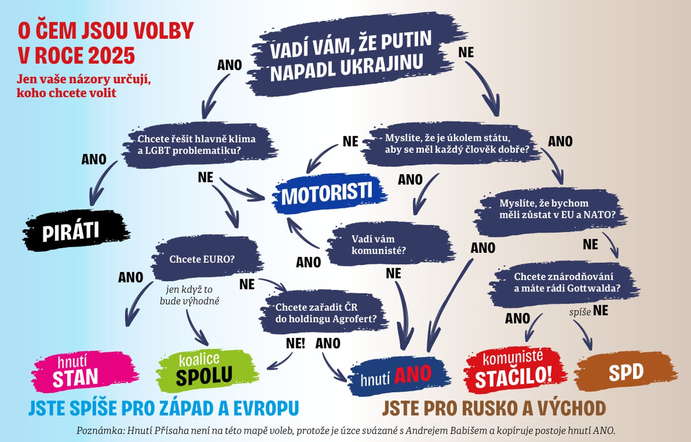 Už první rozhodovací blok „Vadí vám, že Putin napadl Ukrajinu?“ je špatně, protože pracuje s nesouměřitelnými pojmy. Jsou dvě možné verze: